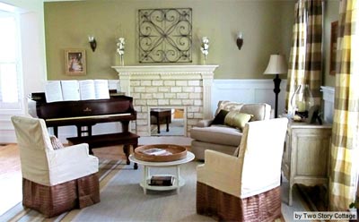 Yukarıdaki odada, piyano ve tekli koltuk yerine bir kanepe sığdırılabilirdi ancak ev sahipleri elbette sırf bir kanepe için piyanolarından feragat etmeyi düşünmemişler. Oldukça farklı, şık ve gösterişli bir düzenleme olmuş.